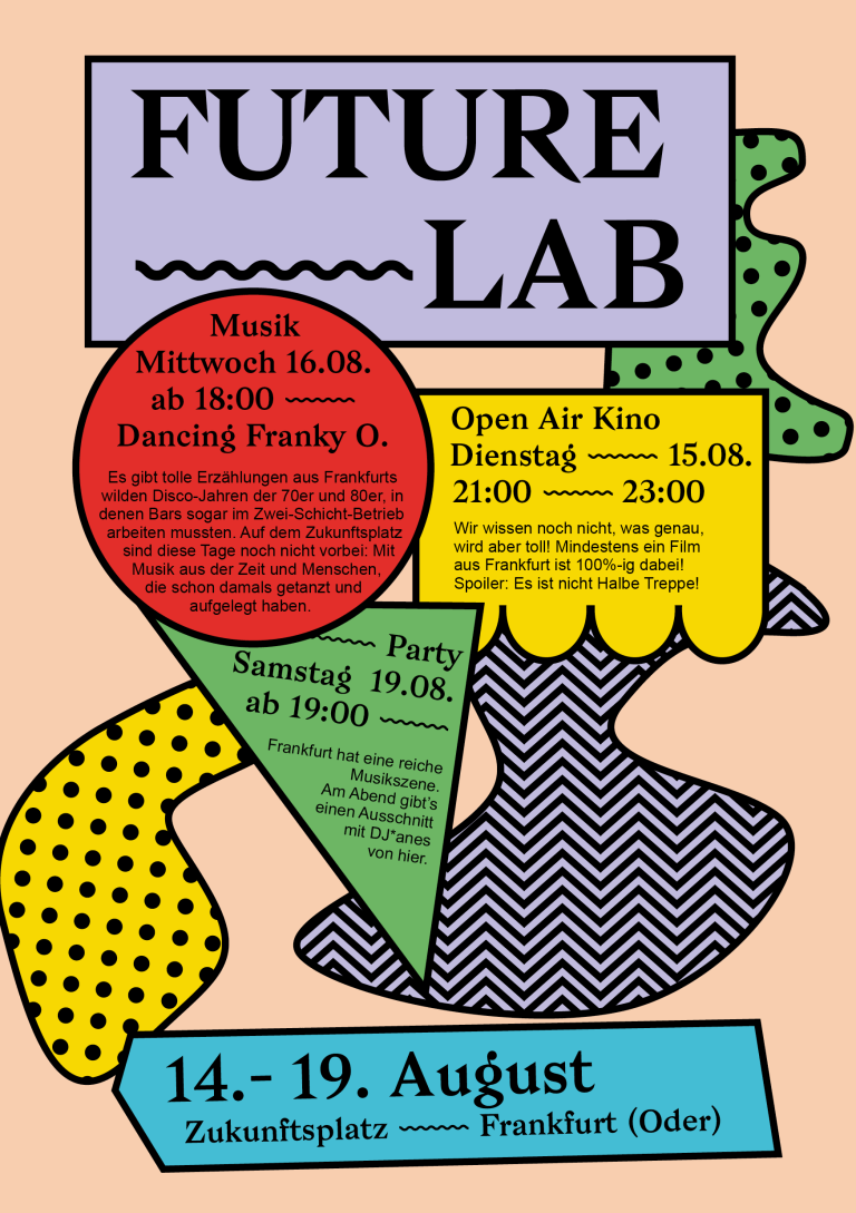 For this purpose, a public learning space is to be created with the help of an urban intervention, which is to address different target groups. In cooperation with civil society and urban actors (including Helfende Hände – Blaue Brücke e.V., Kukuryku, Kooperationszentrum Frankfurt (Oder) – Słubice), formats will be designed in the three weeks starting August 14, 2023, to form a place for getting to know each other, exchanging ideas, discovering films and music, and of course learning.