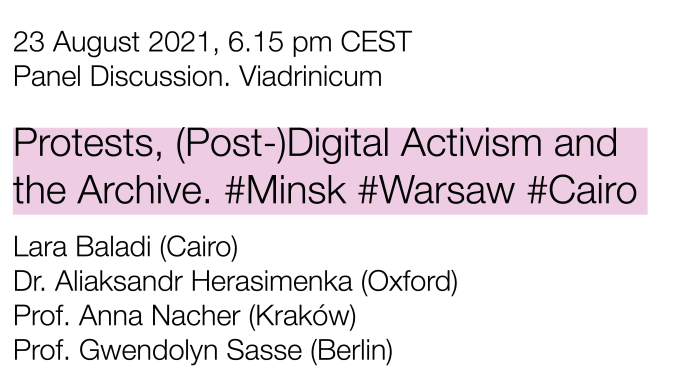 Protests, (Post-)Digital Activism and the Archive. #Minsk #Warsaw #Cairo