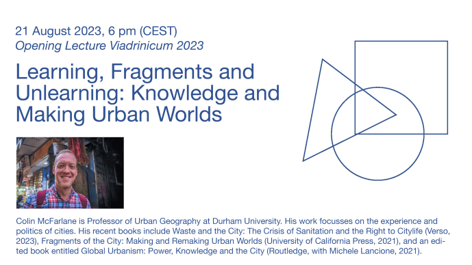 Learning, Fragments and Unlearning: Knowledge and Making Urban Worlds 21 August 2023, 6.00 pm (CEST)Logensaal, Logenstr. 1115230 Frankfurt (Oder) and online via zoom, please register here: viadrinicum@europa-uni.de Learning is a condition of urban life. The ways in which cities …